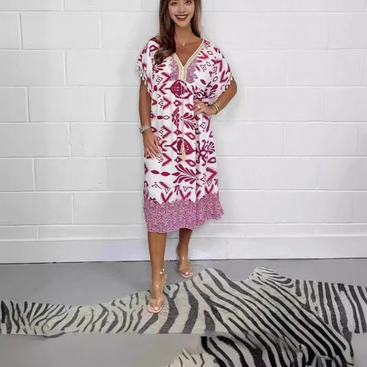 Fashion Printed V-neck Tassel Stitching Casual DressRegular price $46.91Regular price $46.91 Sale priceUnit price perSold out