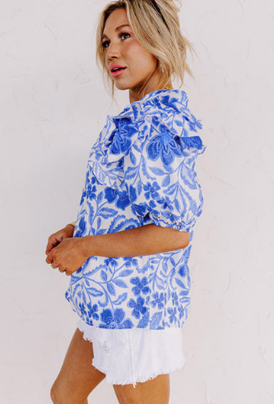 Dark Blue Floral Print Ruffled Bubble Sleeve BlouseRegular price From $73.56Regular price From $73.56 Sale priceUnit price perSold out