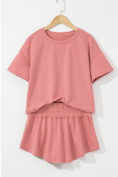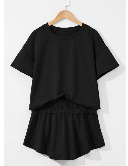 Black 2pcs Cropped Tee And Ruffle High Waist Skort Set