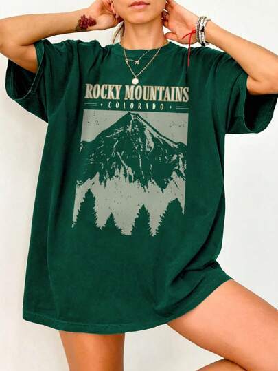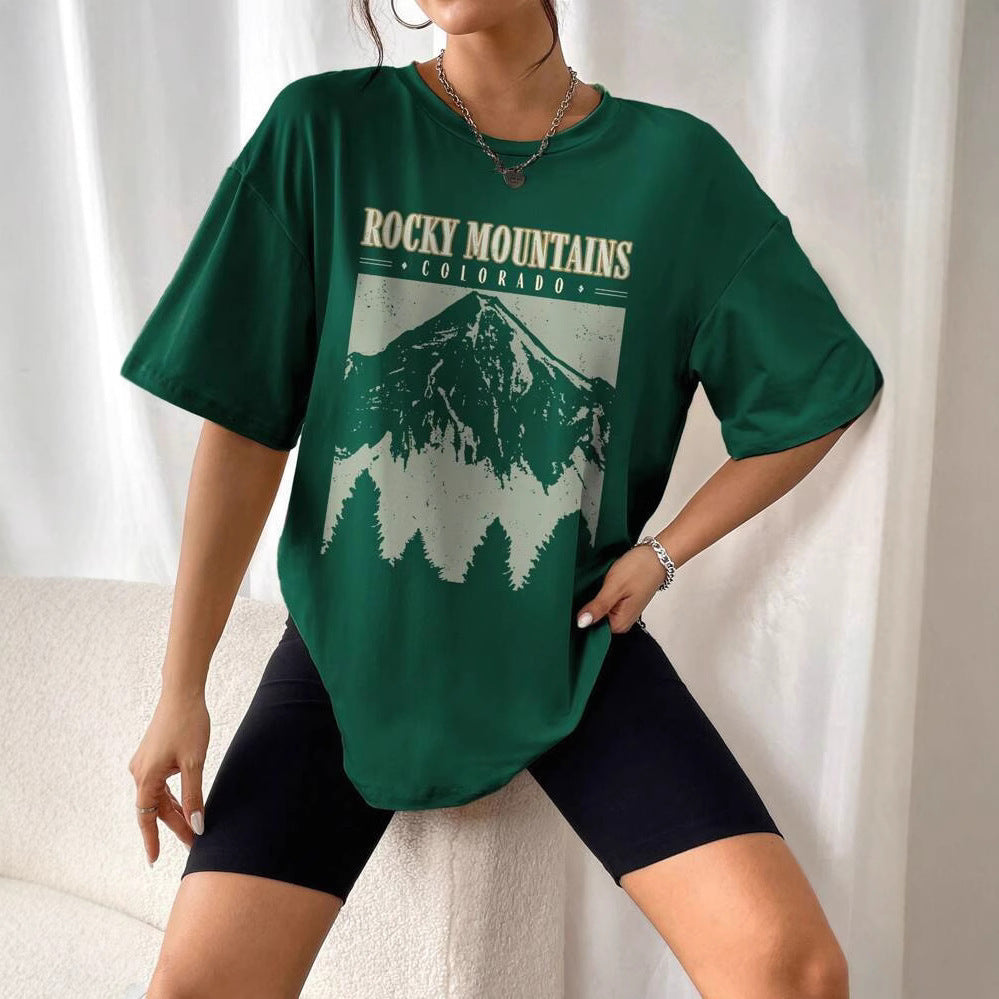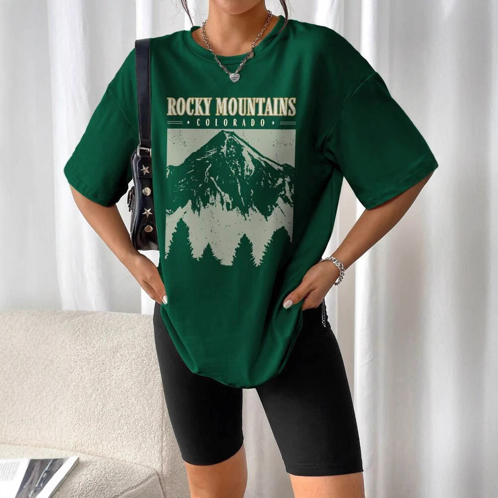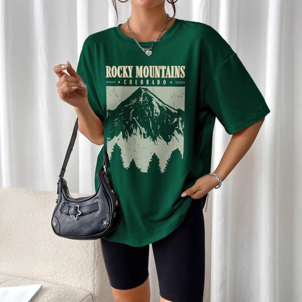 Women's Summer Loose Casual Mountain & Letter Print